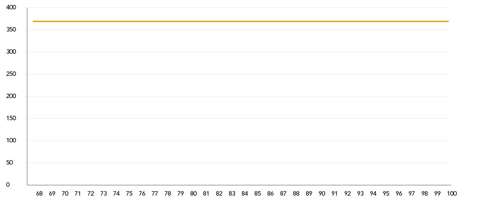 In onderstaande afbeeldingen zie je hoe je pensioen zich ontwikkelt in verschillende economische omstandigheden. Bij de berekeningen gaan we er vanuit dat jij en je partner allebei 68 jaar zijn en dat je een pensioenkapitaal hebt van €100.000.