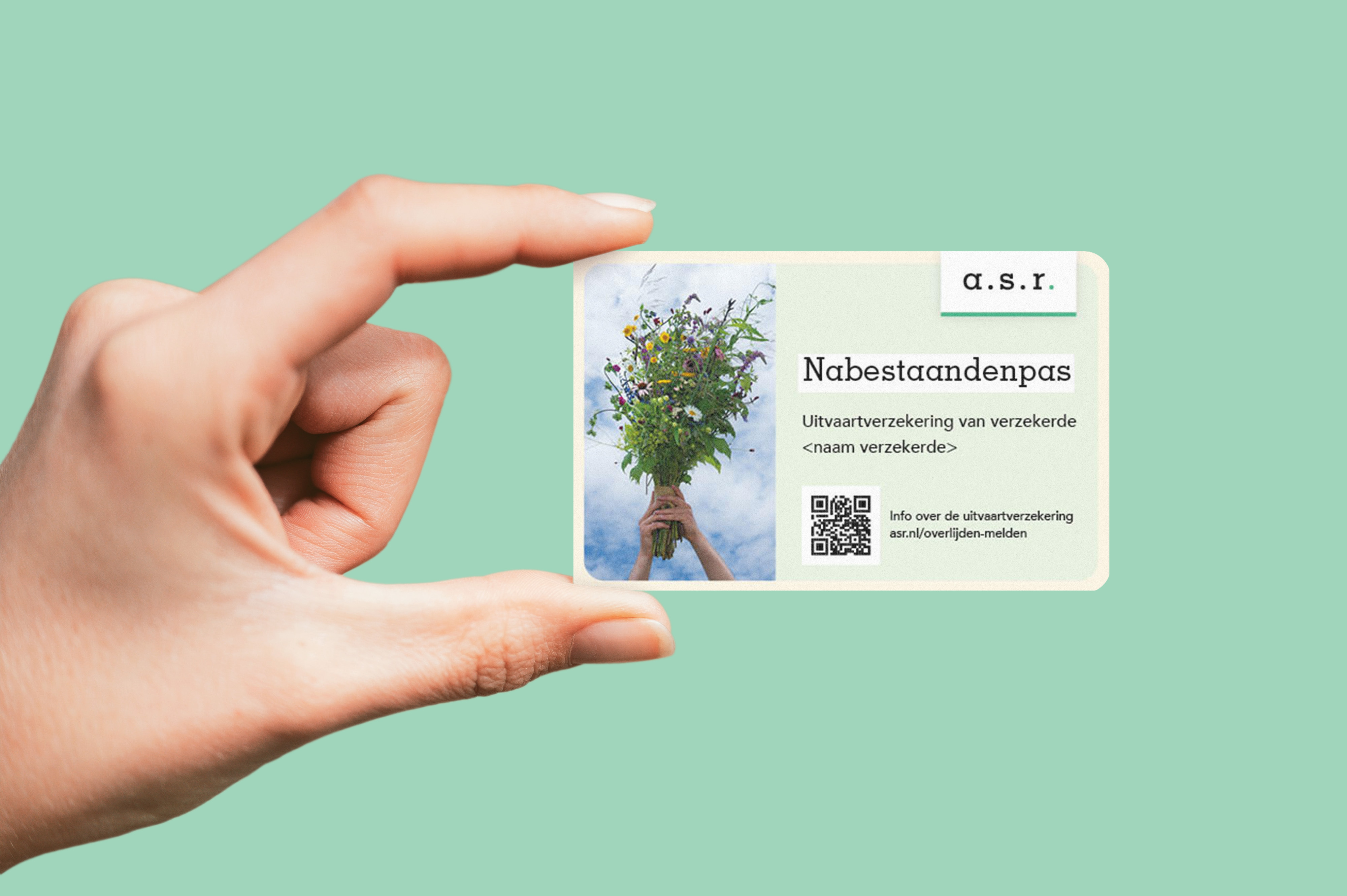 Wil je dat jouw nabestaanden weten wat ze moeten doen als je overlijdt? Met de Nabestaandenpas van a.s.r. geef je hen duidelijkheid en hulp op het juiste moment. Dat geeft rust voor jou én voor hen. Iedereen met een uitvaartverzekering bij a.s.r. kan de nabestaandenpas gratis aanvragen.
